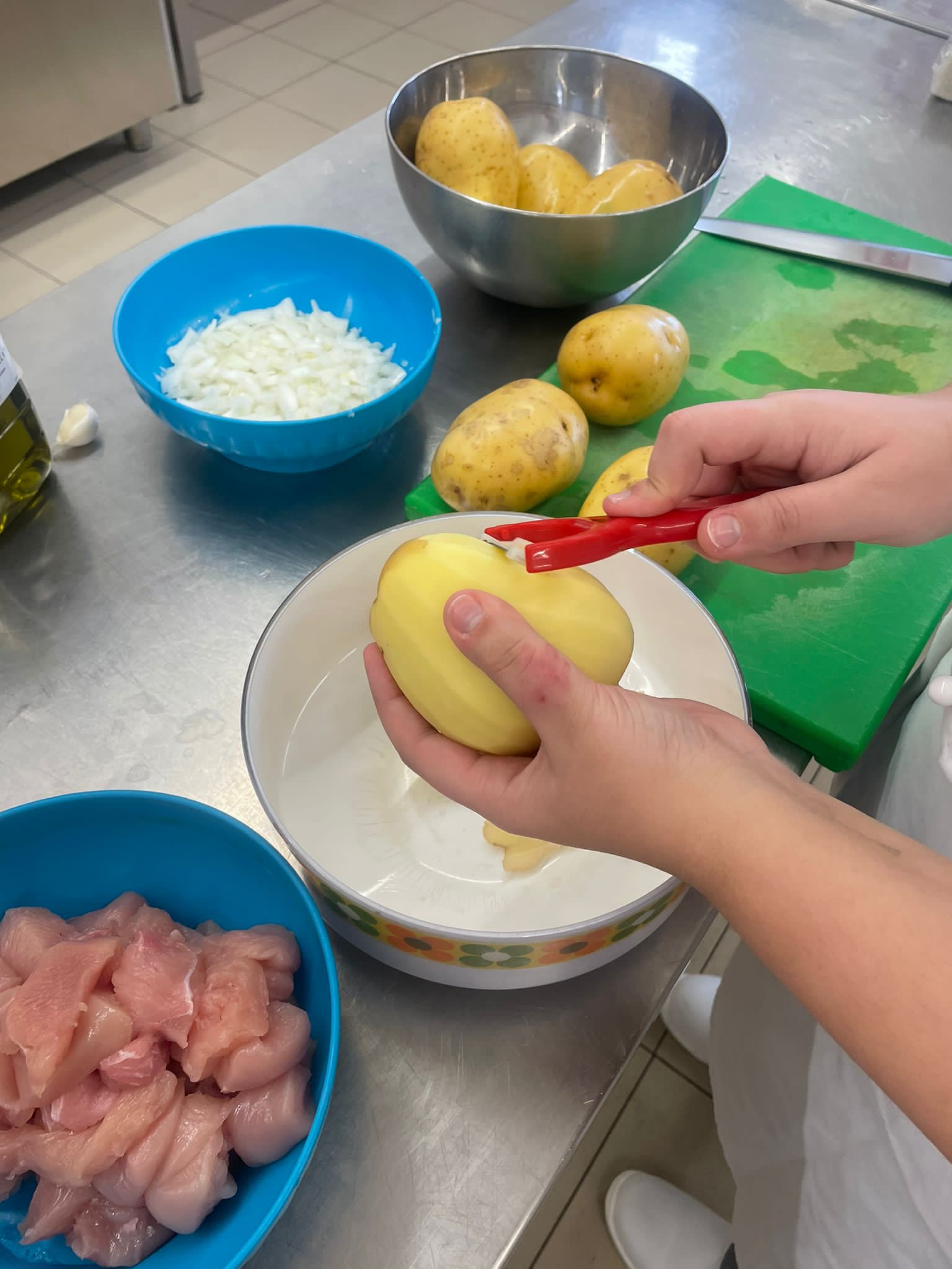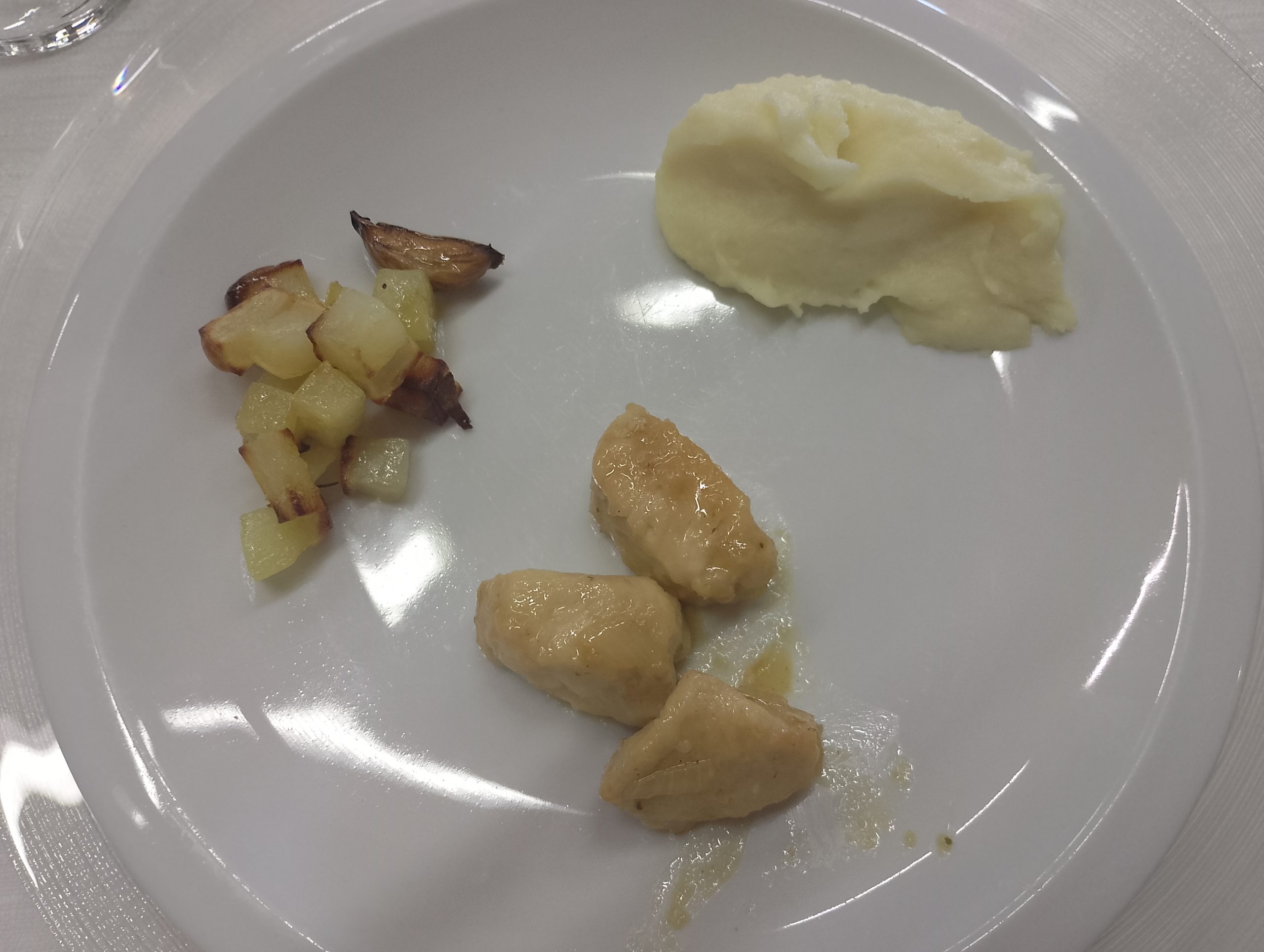 Bocconcini di pollo e lonza,con purè e patate al forno
