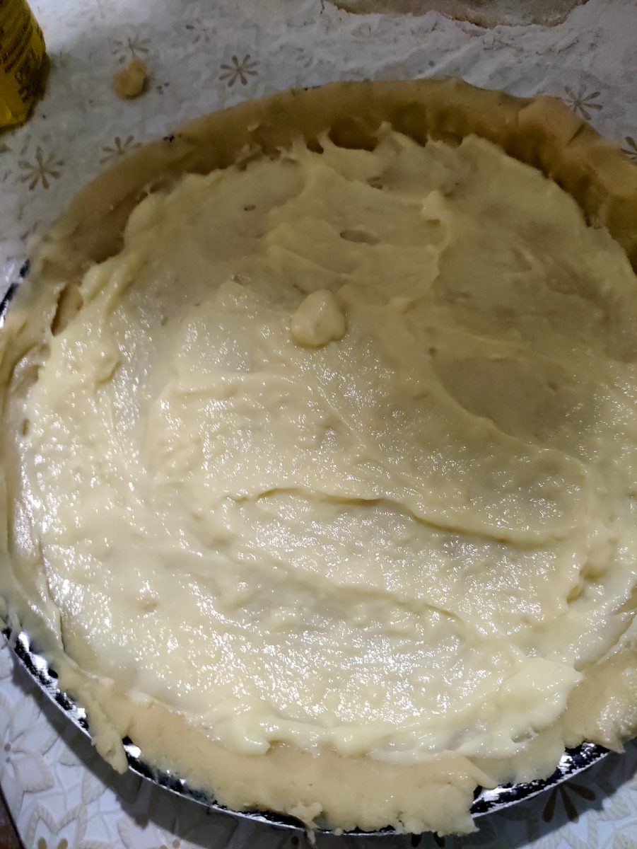 7. mettere la crema nello stampo e aggiungere un altro strato di pasta frolla