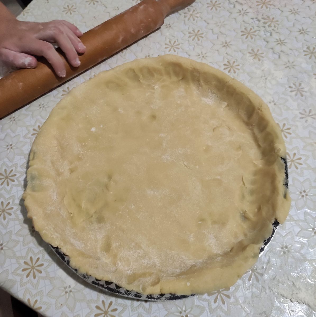 5. mettere la farina su uno stampo e stendere la pasta frolla
