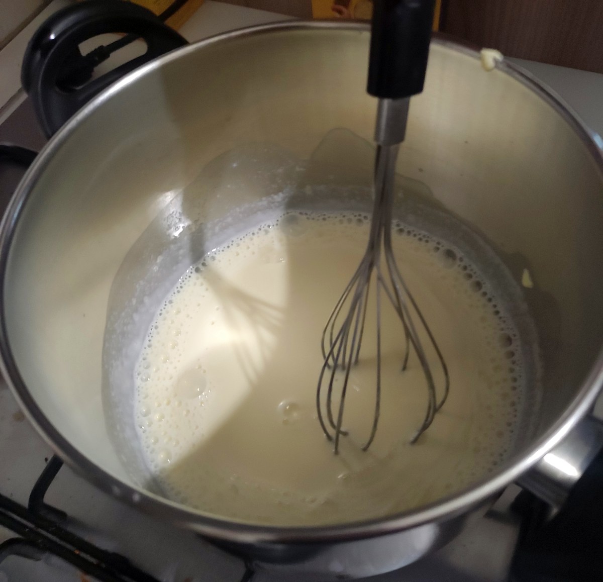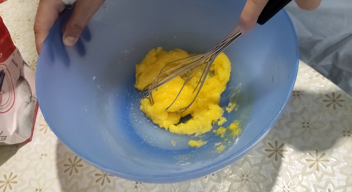 6. mettere i tuorli lo zucchero e la farina nel latte e mescolare fino a quando non diventa crema