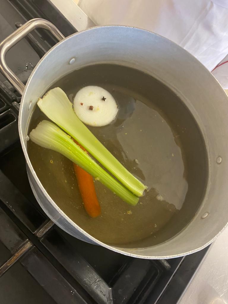 In una bacinella mettiamo 2 dita d'acqua e mettiamo in ammollo i funghi i porcini per una mezz'oretta